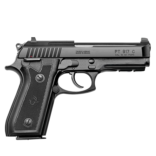 A TAURUS 917 é a versão com cano menor da tradicional 92, com armação em alumínio, adequada para a utilização em diversos segmentos, como esportivo, militar, policial e defesa pessoal.